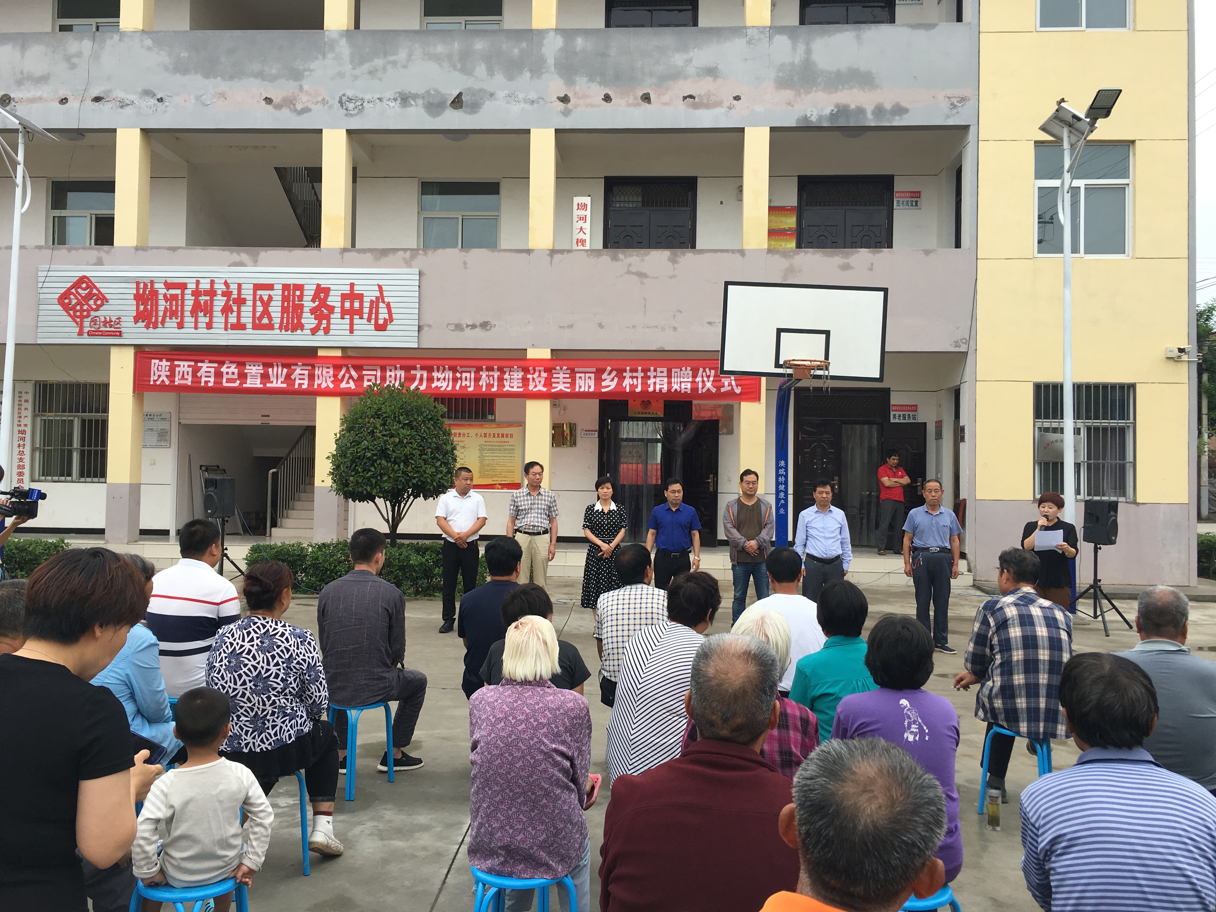 近日,陜西有色置業(yè)有限公司在鄠邑區(qū)渭豐鎮(zhèn)坳河村舉辦“助力坳河村建設美麗鄉(xiāng)村”捐贈儀式,鄠邑區(qū)人居辦副主任齊長民、投資工信局副局長張培昭,以及渭豐鎮(zhèn)、坳河村相關領導干部出席本次捐贈儀式。