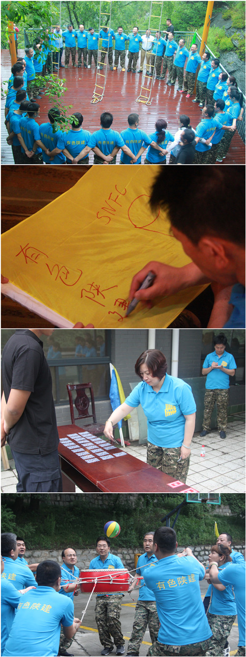 在開營儀式上,參訓(xùn)人員被隨機分為三隊,按規(guī)定在15分鐘內(nèi)確定各自隊名、隊長、隊呼及隊歌。經(jīng)過各隊熱烈而認(rèn)真的討論,確定了三個團隊名稱分別為“先鋒隊”、“井隊”和“火箭隊”,為期兩天的拓展訓(xùn)練正式開始。