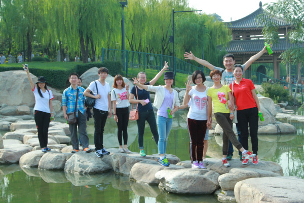 活動(dòng)開始前,大家就已換上運(yùn)動(dòng)衣和運(yùn)動(dòng)鞋,精神抖擻,整裝待發(fā)。下午三點(diǎn)半活動(dòng)正式開始。路線規(guī)劃是從曲江遺址公園西門出發(fā),繞著曲江南湖行走一圈,再回到起點(diǎn)。曲江南湖是古都長安有名的風(fēng)景區(qū),曲江南湖周圍綠樹環(huán)繞,空氣清新,各種吸引眼球的雕塑和亭榭散布于曲江遺址公園內(nèi),選擇此地進(jìn)行健步走,員工們可以邊行走邊觀賞美景,既鍛煉了身體,又放松了心情。