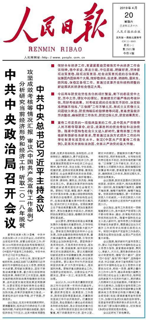 2019年4月19日,中共中央政治局召開會議,審議《中國共產(chǎn)黨宣傳工作條例》