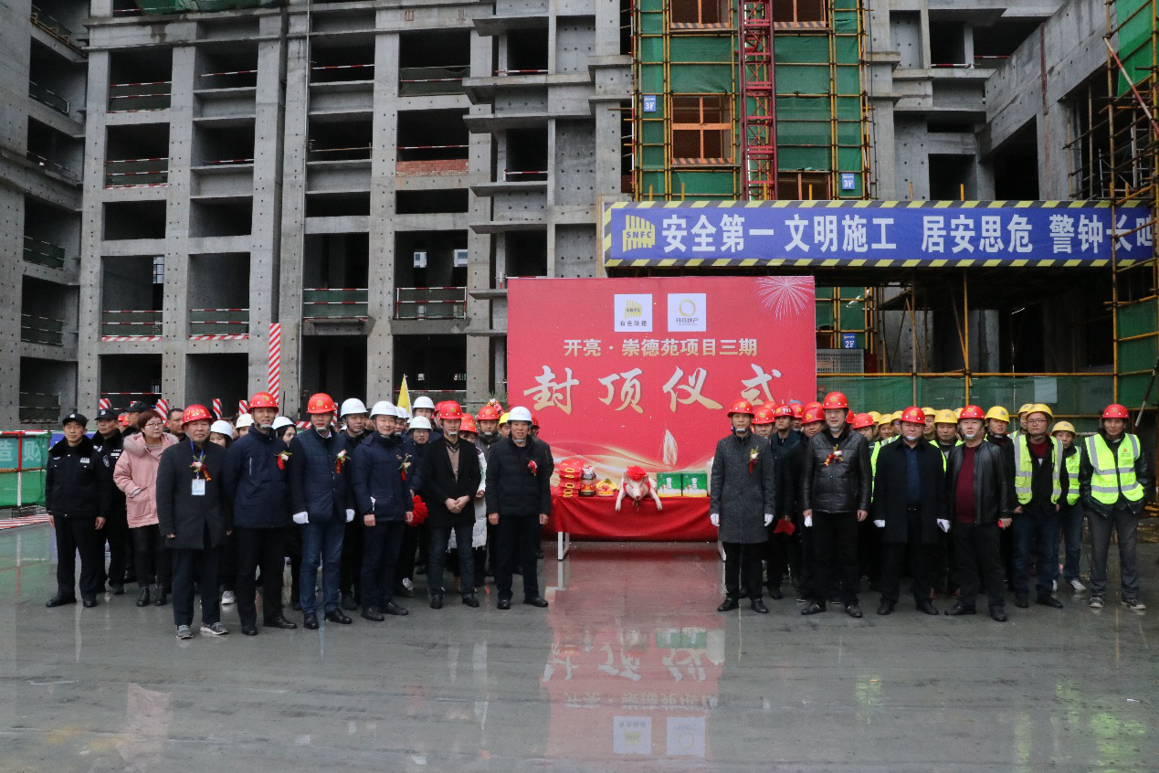 2020年1月6日早晨8時(shí)零8分,在喜慶的鑼鼓聲中,禮花飛揚(yáng),由公司承建的安康開亮·高新崇德苑三期工程全面封頂,一幕激動(dòng)人心的時(shí)刻來臨……當(dāng)?shù)谒墓こ坦窘?jīng)理曹國勝與開亮地產(chǎn)董事長魏開亮先生共同為4#樓頂層鏟下最后一鏟混凝土?xí)r,標(biāo)志著開亮·崇德苑三期主體結(jié)構(gòu)工程,在經(jīng)過十個(gè)月的精心組織施工后全面封頂,為項(xiàng)目主體施工階段劃上了圓滿的句號(hào)。