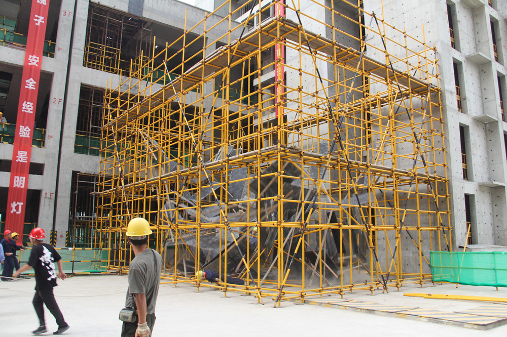為確保此次演練圓滿完成,針對(duì)建筑業(yè)易發(fā)生的安全隱患,公司選定了高架支模坍塌演練科目。為貼近實(shí)際,并能夠反映事故發(fā)生后應(yīng)急響應(yīng)及救援的真實(shí)效果,生產(chǎn)運(yùn)行部前期編制了專項(xiàng)應(yīng)急預(yù)案,不斷進(jìn)行現(xiàn)場(chǎng)排演,完善不足,多次修訂演練腳本,最終確定了切實(shí)可行的演練方案。