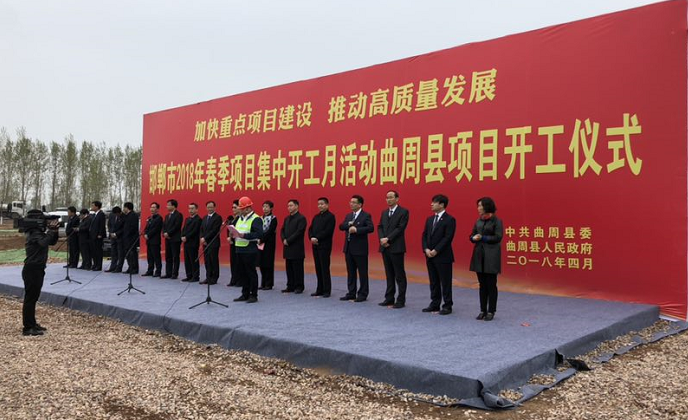 邯鄲市市長王立彤、市人大主任侯華梅、省大督查組副組長董江華、曲周縣縣長李凡、縣委副書記黃志勇及各相關(guān)單位領(lǐng)導、有色陜建項目負責人朱繼軍等約600余人出席了項目開工儀式。儀式由縣委副書記黃志勇同志主持。