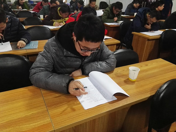 上午九點(diǎn)競(jìng)賽正式開(kāi)始。參賽人員拿到題后,細(xì)心瀏覽并作答,現(xiàn)場(chǎng)答題氛圍安靜嚴(yán)肅。據(jù)悉,此次競(jìng)賽題目分為兩類(lèi),分別是土建和安裝專(zhuān)業(yè),由施工方案競(jìng)賽評(píng)選領(lǐng)導(dǎo)小組出題。通過(guò)對(duì)現(xiàn)場(chǎng)答題職工的采訪,他們認(rèn)為此次競(jìng)賽的題量適中,題目有深度,雖然按照書(shū)本知識(shí)能夠答完,但是要結(jié)合安全文明施工、綠色施工、優(yōu)質(zhì)結(jié)構(gòu)和新技術(shù)示范創(chuàng)建等要求,答題標(biāo)準(zhǔn)就必須提升檔次,不再局限于答完,更要求答好、答精。公司也據(jù)此為參賽人員留夠充足的答題時(shí)間,讓他們認(rèn)真思考,耐心作答。