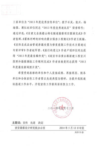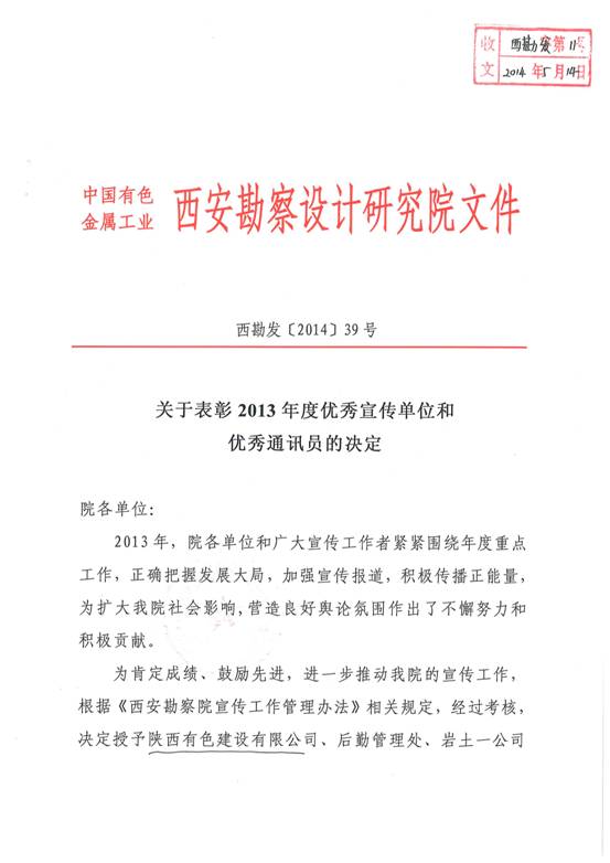 關于表彰2013年度優(yōu)秀宣傳單位和優(yōu)秀通訊員的決定