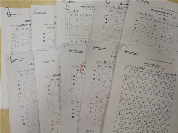舉辦安全生產(chǎn)知識測試答題活動。在“安全生產(chǎn)月”活動中,各項目紛紛組織開展“消除事故隱患、筑牢安全防線”安全生產(chǎn)知識測試,營造了“人人學安全,人人懂安全”的良好氛圍,切實有效提升了項目一線職工的安全意識,強化了安全技能,為公司健康平穩(wěn)發(fā)展筑牢“安全墻”。