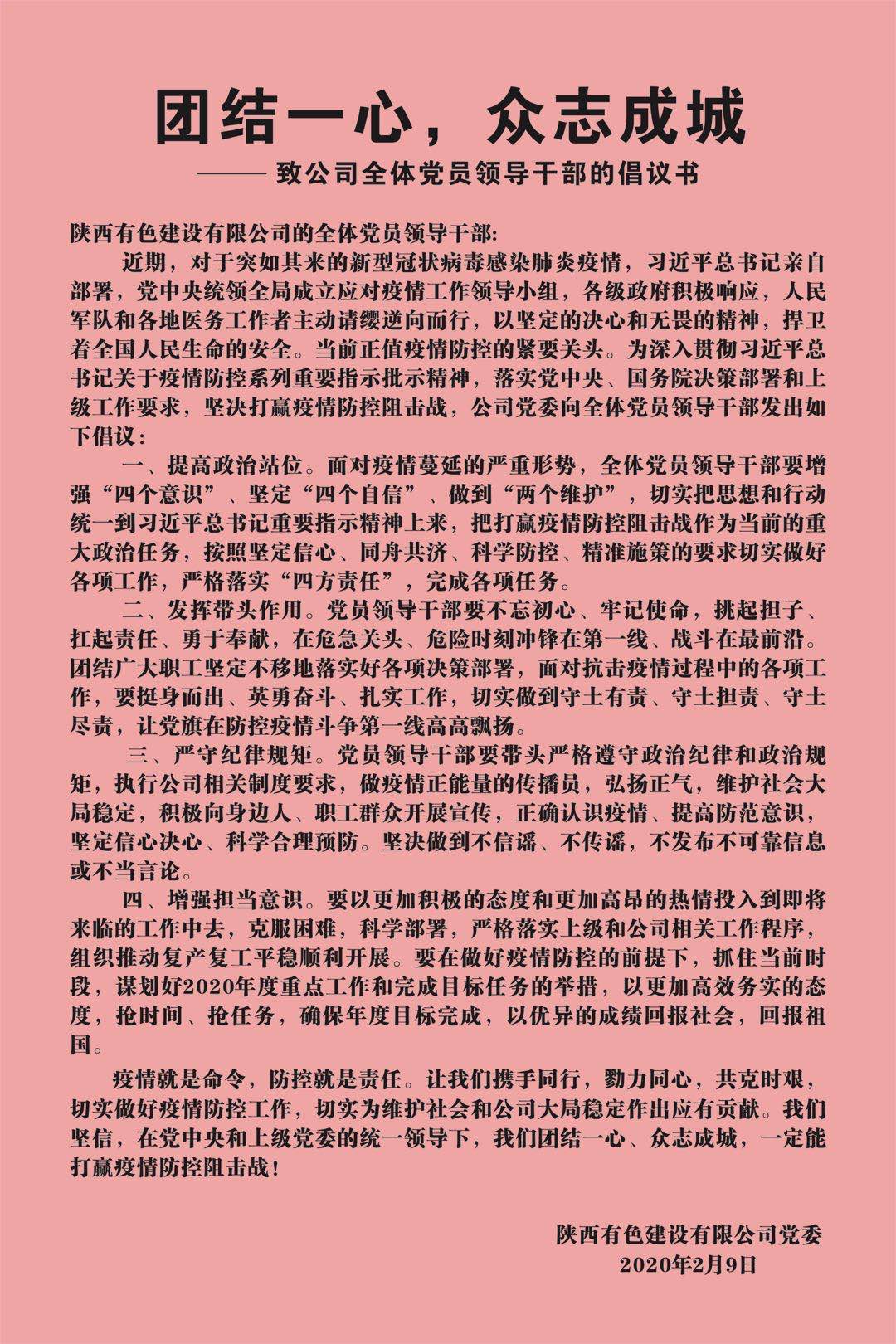 【疫情防控】團結(jié)一心,眾志成城——致公司全體黨員領(lǐng)導干部的倡議書